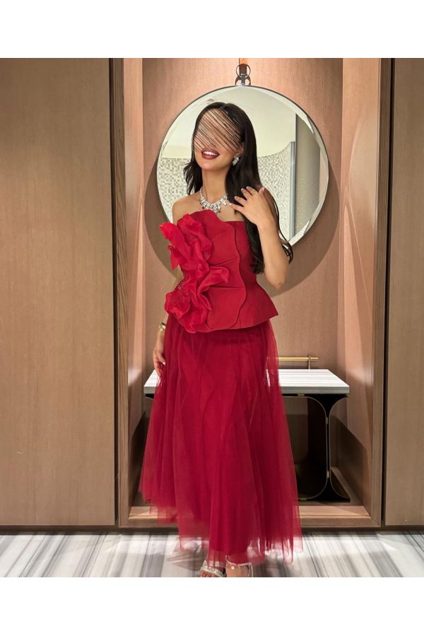 عبارة عن قطعتين الاعلى توب و الاسفل تنورة